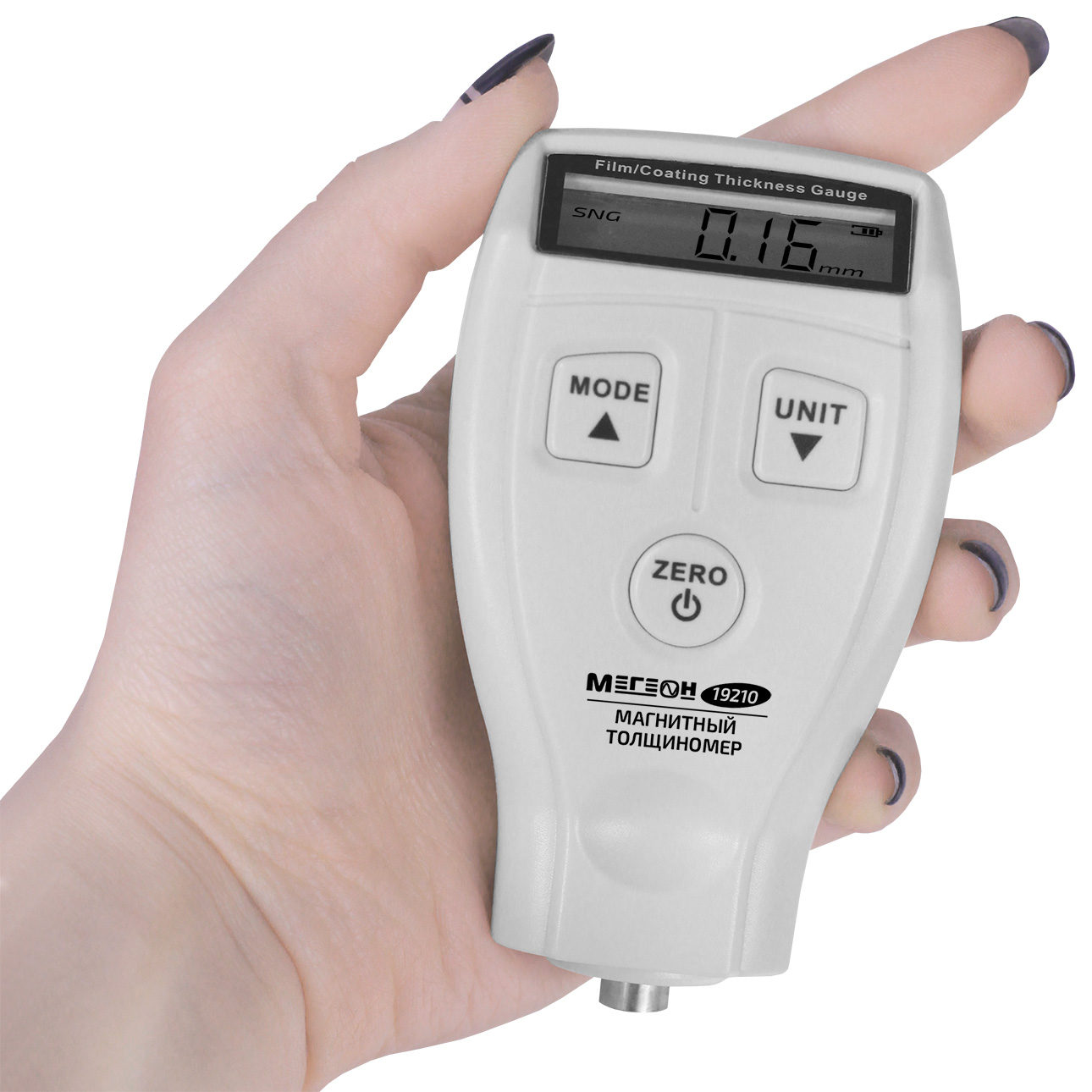 МЕГЕОН 19210 — портативный прибор, предназначенный для быстрого, аккуратного и неразрушающего измерения толщины немагнитных покрытий, таких как лакокрасочное, гальваническое покрытие, ламинирующая пленка и другие, находящихся на стальных поверхностях. Прибор может использоваться на производствах, в окрасочных и гальванических цехах, в химической промышленности, а также для инспекции различных товаров и материалов. Прекрасно подходит для измерения ЛКП на кузовах автомобилей, а также для проверки толщины окраски любой техники. Прибор имеет эргономичную форму корпуса, небольшие габариты и маленький вес. Благодаря наличию яркой светодиодной подсветки ЖК-дисплея обеспечивается работа в условиях отсутствия освещения или недостаточной видимости. А наличие функции автоматического выключения обеспечивает продолжительный срок службы батарей.