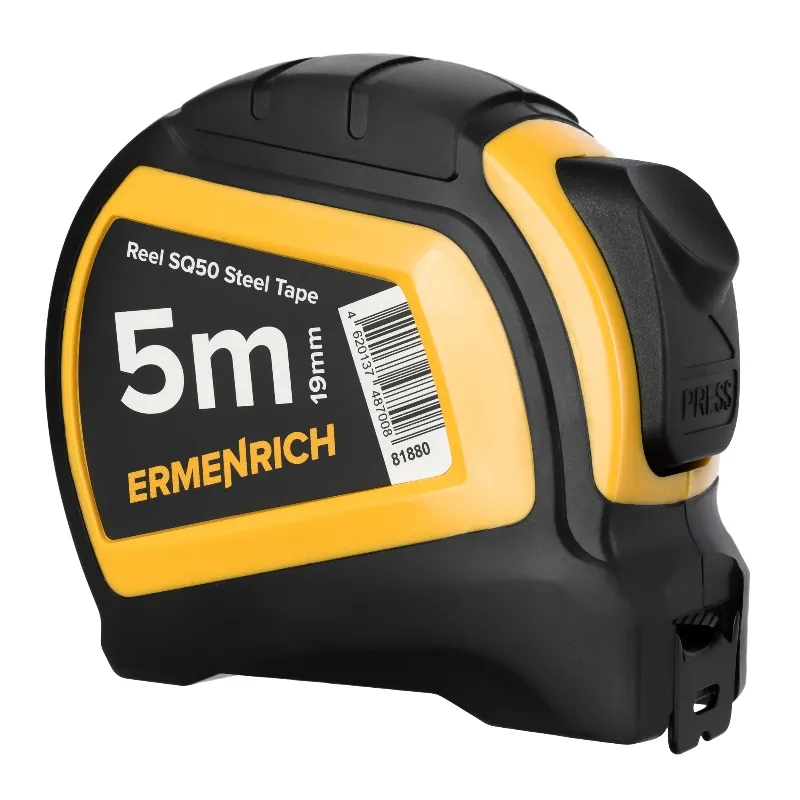 Ermenrich Reel SQ50 — компактная и надёжная рулетка, которая с комфортом ложится в руку и готова к любой задаче как на работе, так и дома. Пять метров ленты из матированной стали позволяют быстро обмерить мебель, проверить размеры окон и дверей, поработать с различными стройматериалами и выполнить прочие бытовые или профессиональные замеры.